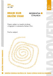 Prijazno vabljeni na mesečno druženje s knjigoljubi in moderatorko Barbaro Žvirc.